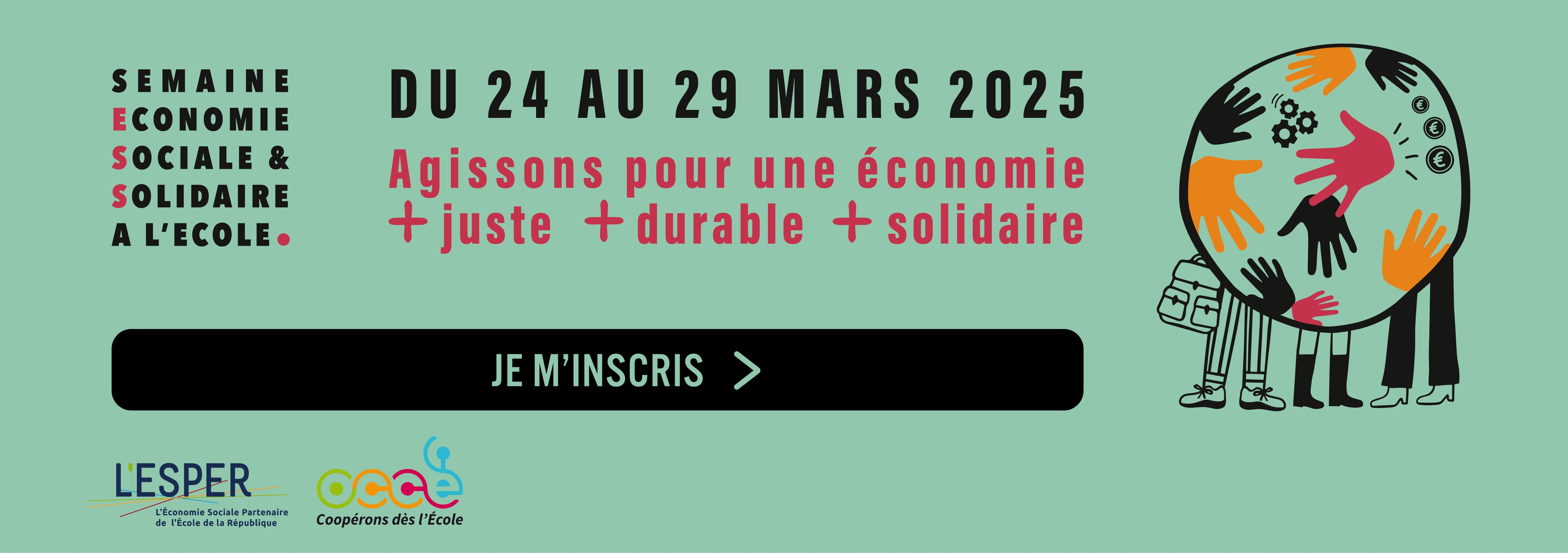Opération co-pilotée par L’ESPER et l’OCCE, la Semaine de l’ESS à l'École (#SESSE2025) a pour but d’éduquer les élèves à l’économie sociale et solidaire par la réalisation et la valorisation d’actions plus justes, plus durables et plus solidaires.
